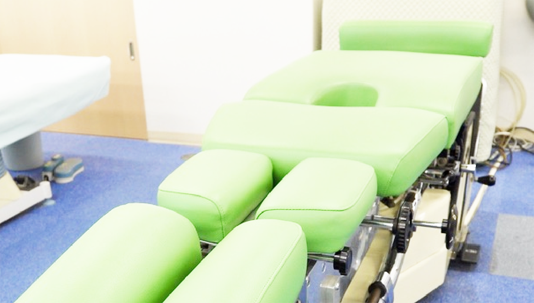 首や肩、腰などベッドで治療を行う患者様の場合、ベッドでうつ伏せになって頂く場合がございます。
