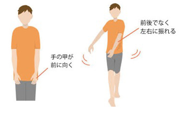 3.腕を振った際に前後に触れず左右に振ってしまう。